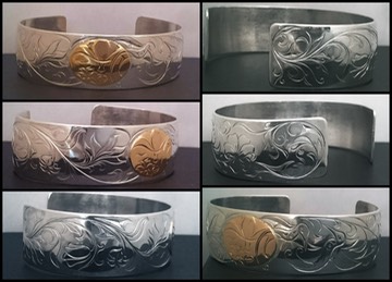 Bracelet - Salish Hummingbirds (Silver w/ Gold Medallion)