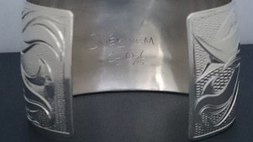 Coast Salish Sun & English Scroll Design on Silver